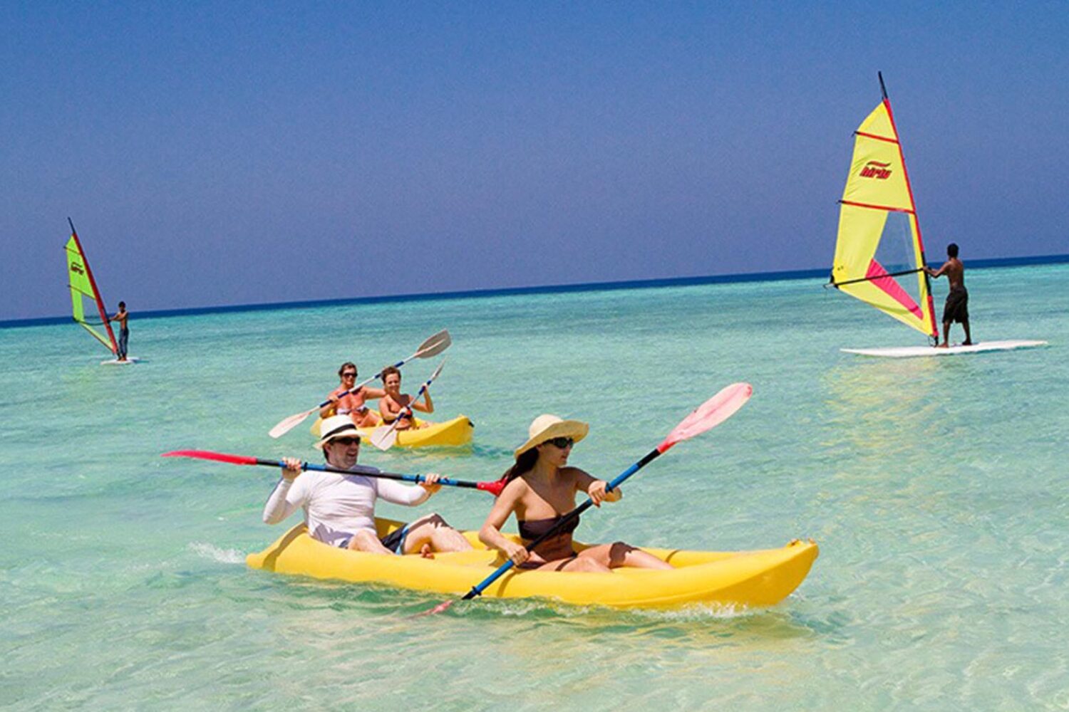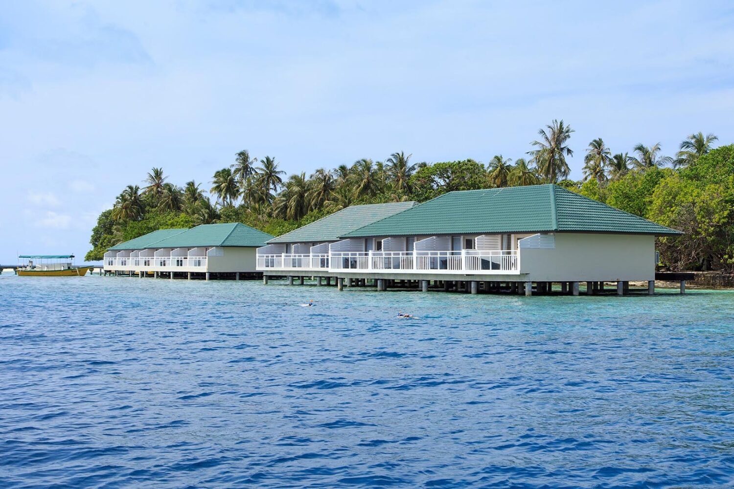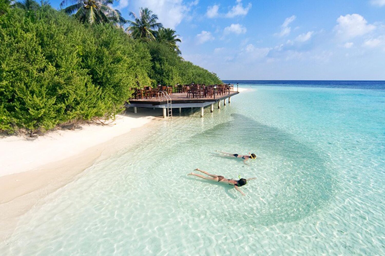 Embudu Village – Embudu Village resort, small island, about 45 minutes from Hulule, will give you everything you are looking for. Nice comfortable rooms, beautiful beaches, good restaurant, everything for a holiday you will never forget. After arriving one of our fast boats (a “Noor”) will be waiting for you in the harbor, and there is the your first surprise; the sea is really blue, just like you saw in the brochure!