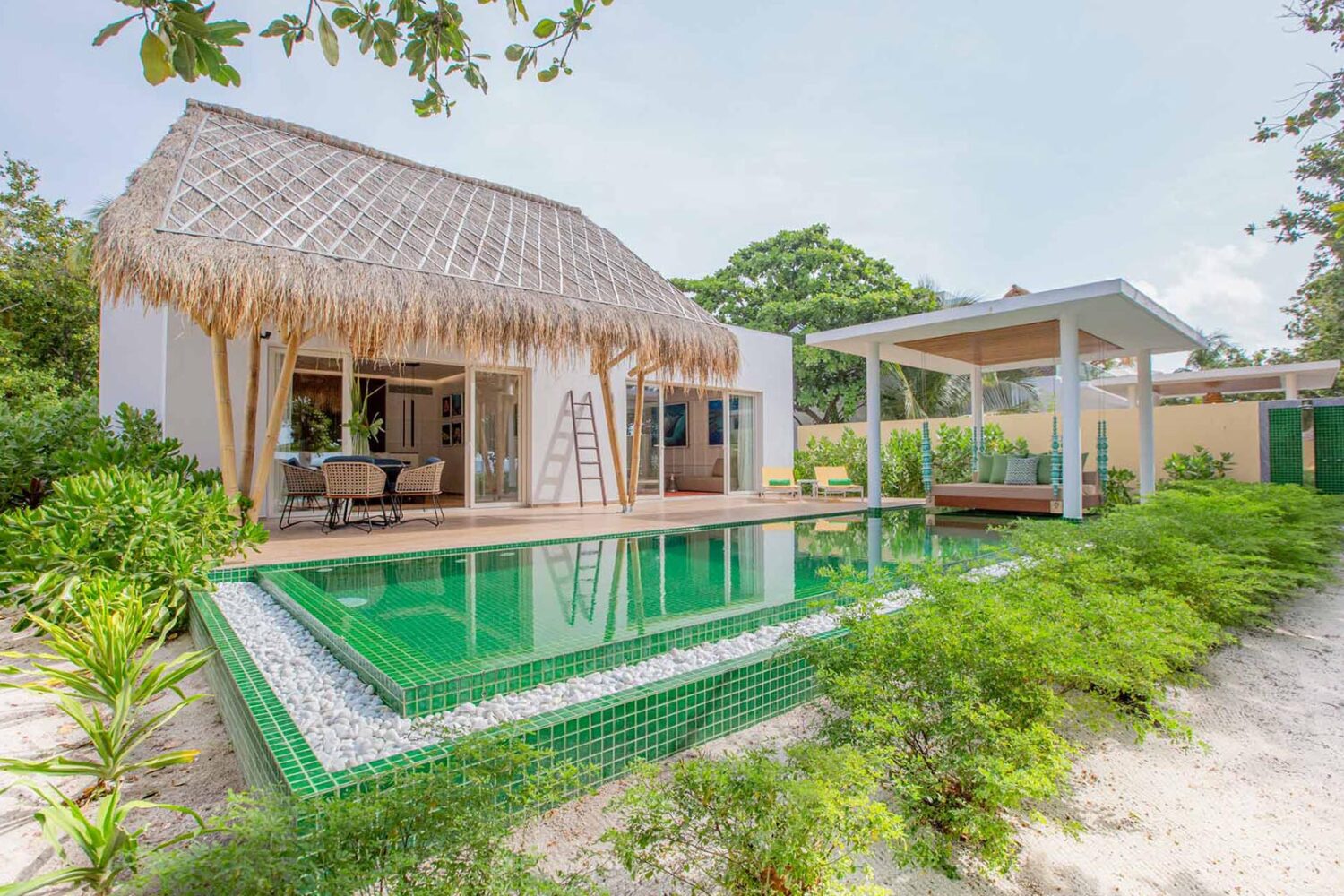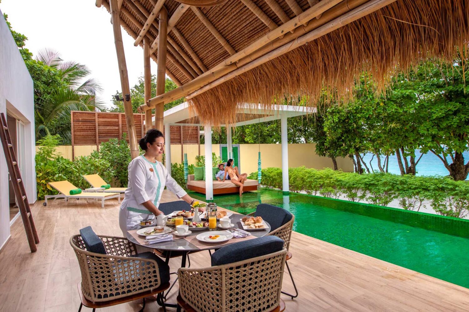 Emerald Maldives Maldives Resort & Spa – emerald maldives resort is a new 5-star Deluxe All-Inclusive Resort, a proud member of The Leading Hotels of the World. Built to blend in perfect harmony with the surrounding environment, using materials such as bamboo, natural stones and Langhi Langhi leaves and a direct focus on energy efficiency and environment preservation, the Resort combines tropical scenery with modern design, creating atmospheres of natural and informal elegance, offering the ideal setting for guests to build new and memorable experiences. Located on the Raa Atoll, in the northern part of the Maldives archipelago, this Deluxe All-Inclusive Resort is surrounded by 1,5 km of soft white sand, on a lush private 20 hectares island and features 120 villas, 60 of which are located on the island and 60 directly on the sea.