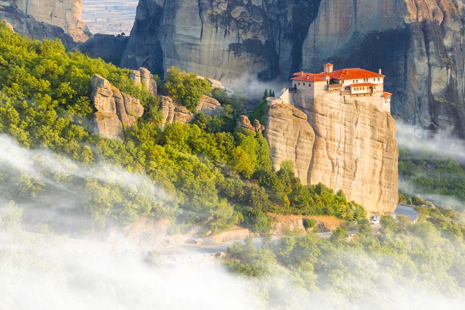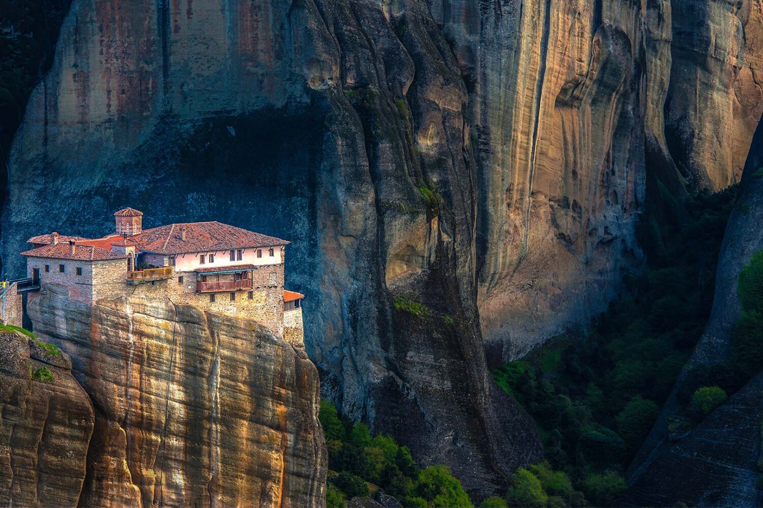 The Holy Monastery of Roussanou was first established in the 14th century. Roussanou Monastery is located on a lower rock and is easy to access by a wooden bridge. The monastery of Roussanou has also attacked by the Germans during world war two and was damaged. A local archaeological service later repaired it, and since then it was occupied by a small community of nuns.