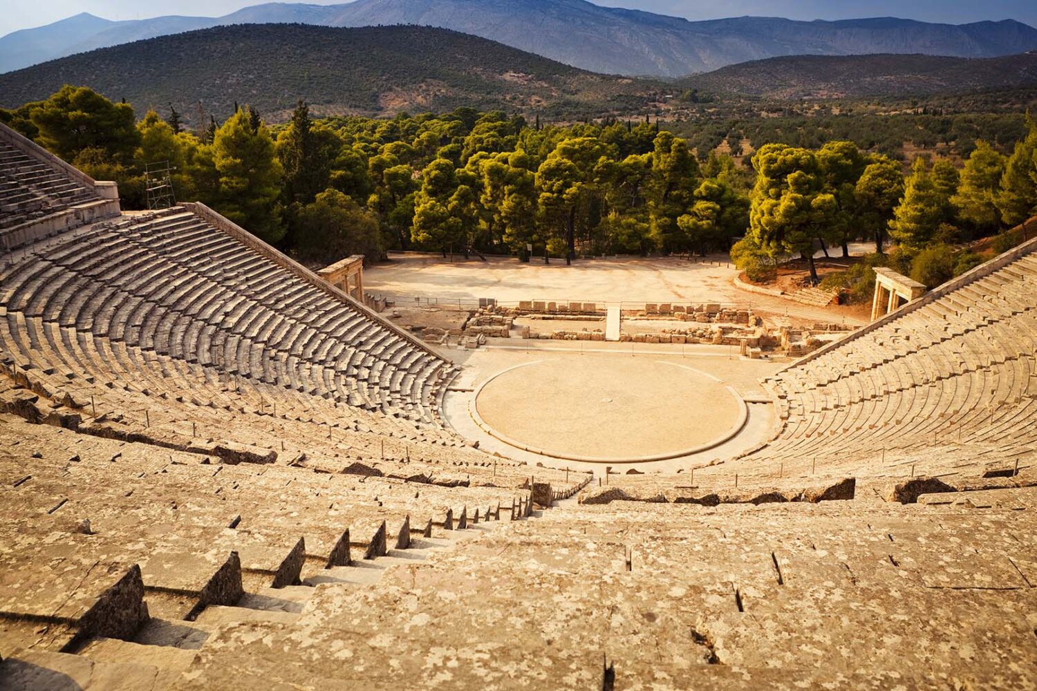 After breakfast, we leave behind Athens to visit Temple of Apollo and the Forum near Isthmus of Corinth, the brief photo stop at The Corinth canal view point to see a significant navigational route in the Greek archipelago connecting the Gulf of Corinth with the Saronic Gulf, the most famous theater of Epidaurus, renowned for its exceptional acoustics, and Temple of Asklepios at Epidaurus.