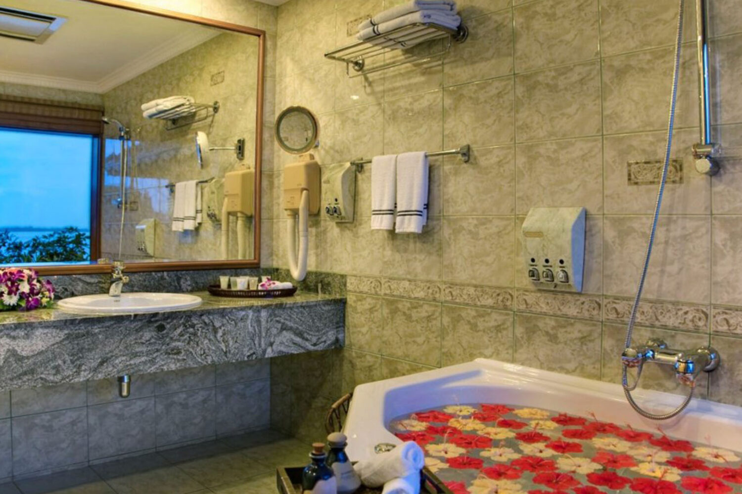 Transfer type: 16 mins by domestic flight OR 2hrs 30mins. from Airport by Speed boat