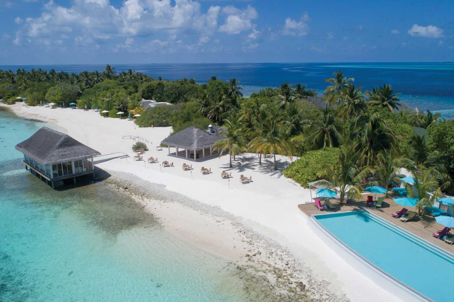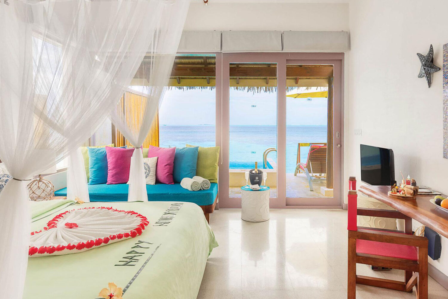 OBLU by Atmosphere at Helengeli, an exhilarating 50-minute speedboat ride from Male’ International Airport lies the Helengeli Island, North Male` Atoll. Re-launched as OBLU by Atmosphere at Helengeli and has opened its doors to the world on 01st November 2015. The Four-Star Superior resort, offering a conclusive All-Inclusive Plan, will showcase 116 villas with vibrant, trendy and colorful interiors fused with tropical Maldivian designs, without affecting the natural aesthetics of the lush green island itself. The OBLU Experience offers guests high quality world cuisine clubbed with a range of activities including superlative diving, water sports & a serene Garden Spa!The resort will strive to be a “Best in Class”Maldivian Beach Holiday Experience!